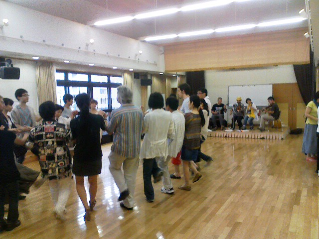 いつもとは場所を変えて、下京いきいき市民活動センターで行ったわけだが、 ステージや広さ、音響設備など、すごくいいと好評だった。 ただし、初めての場所であったため、迷った方が何人かいた。 結果としては、来場者は33人。 コーラーとミュージシャンなどを除くと、24人で踊れた。 コーラーはいつもの通りデイヴィッド。 途中、フランスのダンスをミッシェルが教えてくれる。 音楽は、サラマンダームーンバンド(ピーター、ボスコ、ヘジャ)&シスマン。 一曲だけwishigrowも参加した。 コーラー、ミュージシャン、ダンサーに感謝である。 数人の参加者からは、楽しかったとの声を頂いたが、 いかんせん、wishigrow自身が1回しかダンスに参加しなかったもので、 今回の盛り上がり具合がどうだったか、なんとも言えない。 ウォークスルー(ダンス前のレクチャー)に時間がかかりすぎだと思ったり、 最後のダンスは時間がなかったなと思ったり、 アナウンスタイムの時間が取れなかったと思ったり。 参加者の方、どうでしたか? 感想とか、もっと聞きまくらないといけないですね。 今回一番に思ったのは、適正な人数が集まって、素晴らしいけど、 まだまだ、慣れたダンサーが育っていないなぁーということ。 慣れたダンサーというのは、次はあれでその次はこれと考えずに、踊れるレベルの人。 初心者講習や、練習会なんかを設ける必要があるかもねー、と考えている。 また、デイヴィッドのたまに間違う日本語で、ダンスの説明をするのも無理があると思う。 デイヴィッドは英語のみで教えて、英語を理解できる人が、周りの人に教えるという運営の方がいいかもと思った。 あるいは、僕やその他の常連が、その日やるダンスを知っておくのも重要かもしれない。 一度見本を見せるとかね。 ダンサーを育てたいけど、 主たる目的は交流やから、常に初参加者が来る状況にもしたい。 舵取りが難しいけど、うまくやっていこう。 wishgirow PR